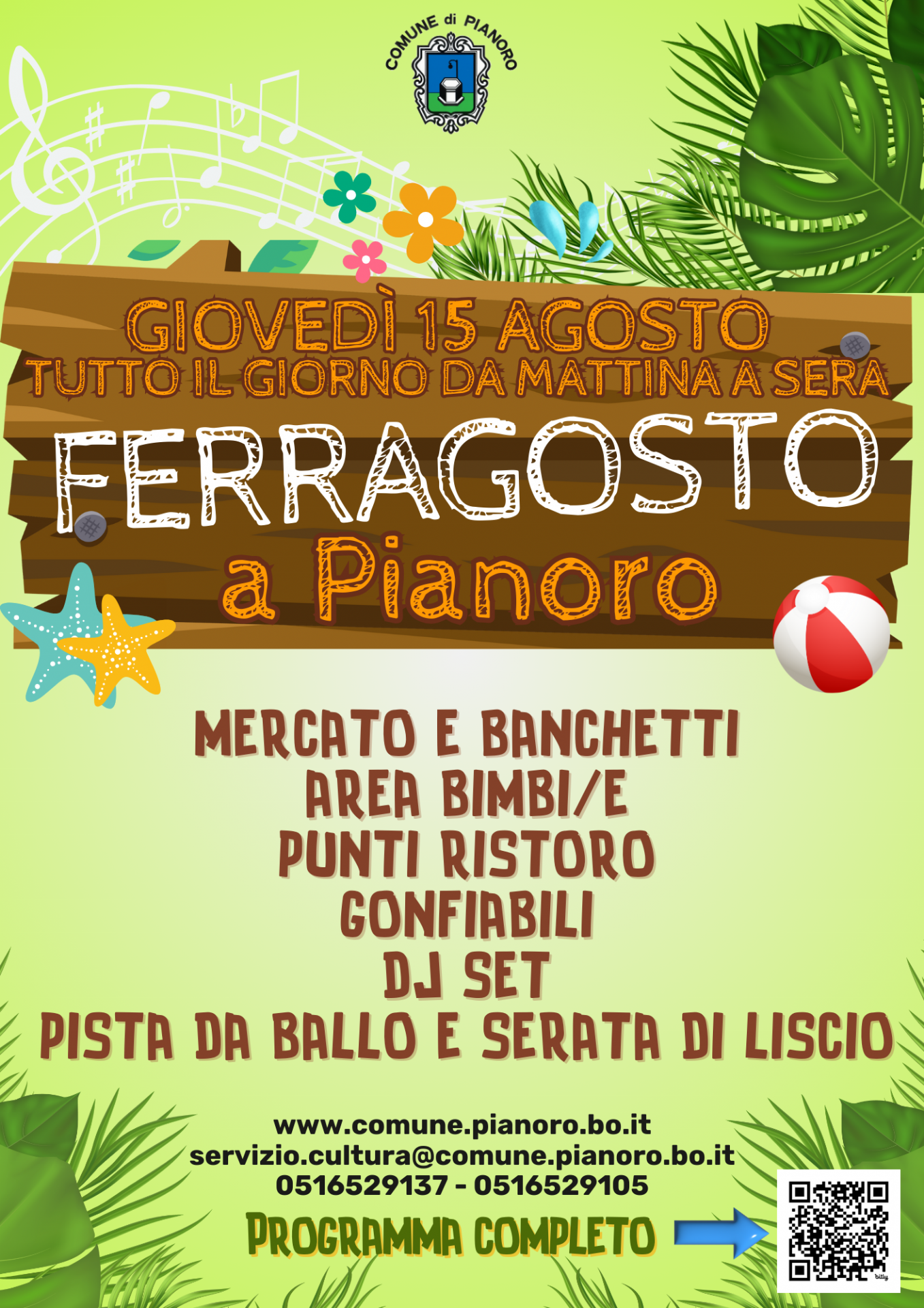 Per il giorno di Ferragosto il centro di Pianoro Nuovo si animerà con una serie di attività ed eventi per festeggiare tutti assieme!