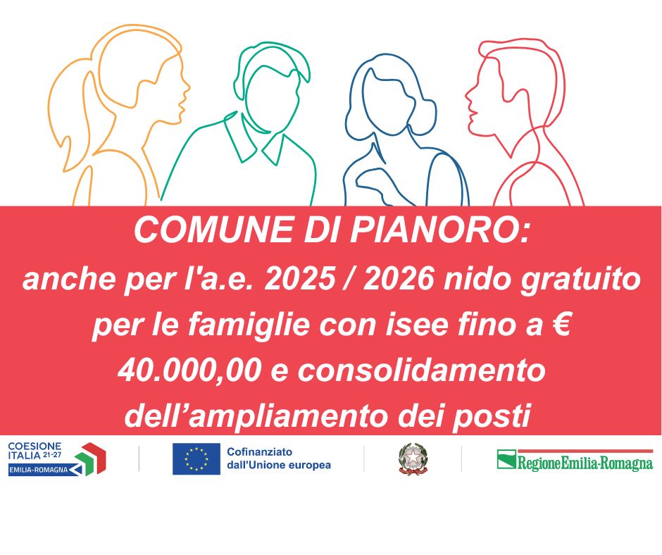 Grazie alla Regione Emilia - Romagna e alle risorse del Fondo Sociale Europeo PLUS-FSE, si confermano le seguenti misure destinate alle famiglie utenti dei Nidi Pubblici del Comune di Pianoro: