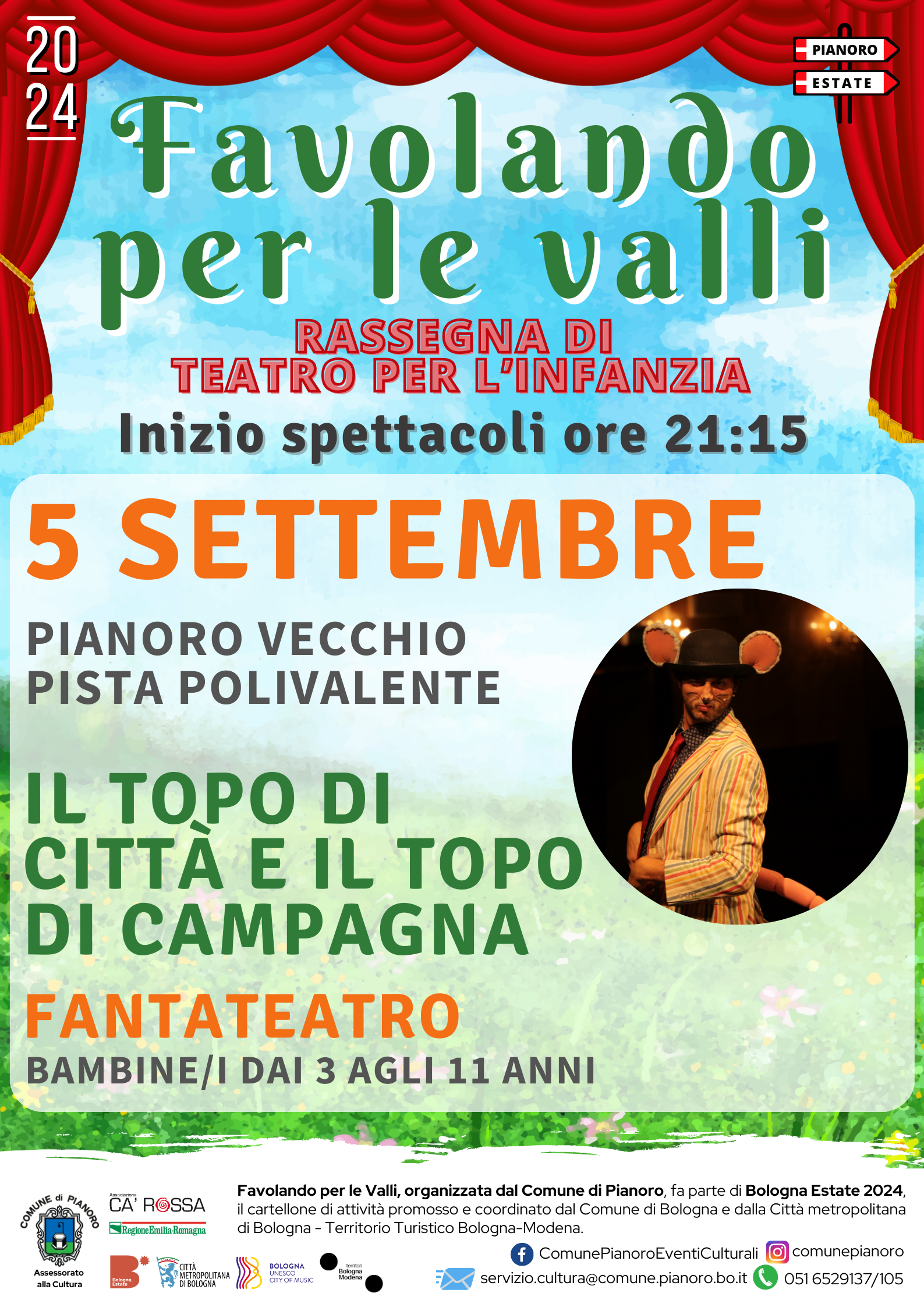 Giovedì 5 settembre 2024 alle ore 21.15 | Pista polivalente - Pianoro Vecchio | Fantateatro presenta “Il topo di città e il topo di campagna”