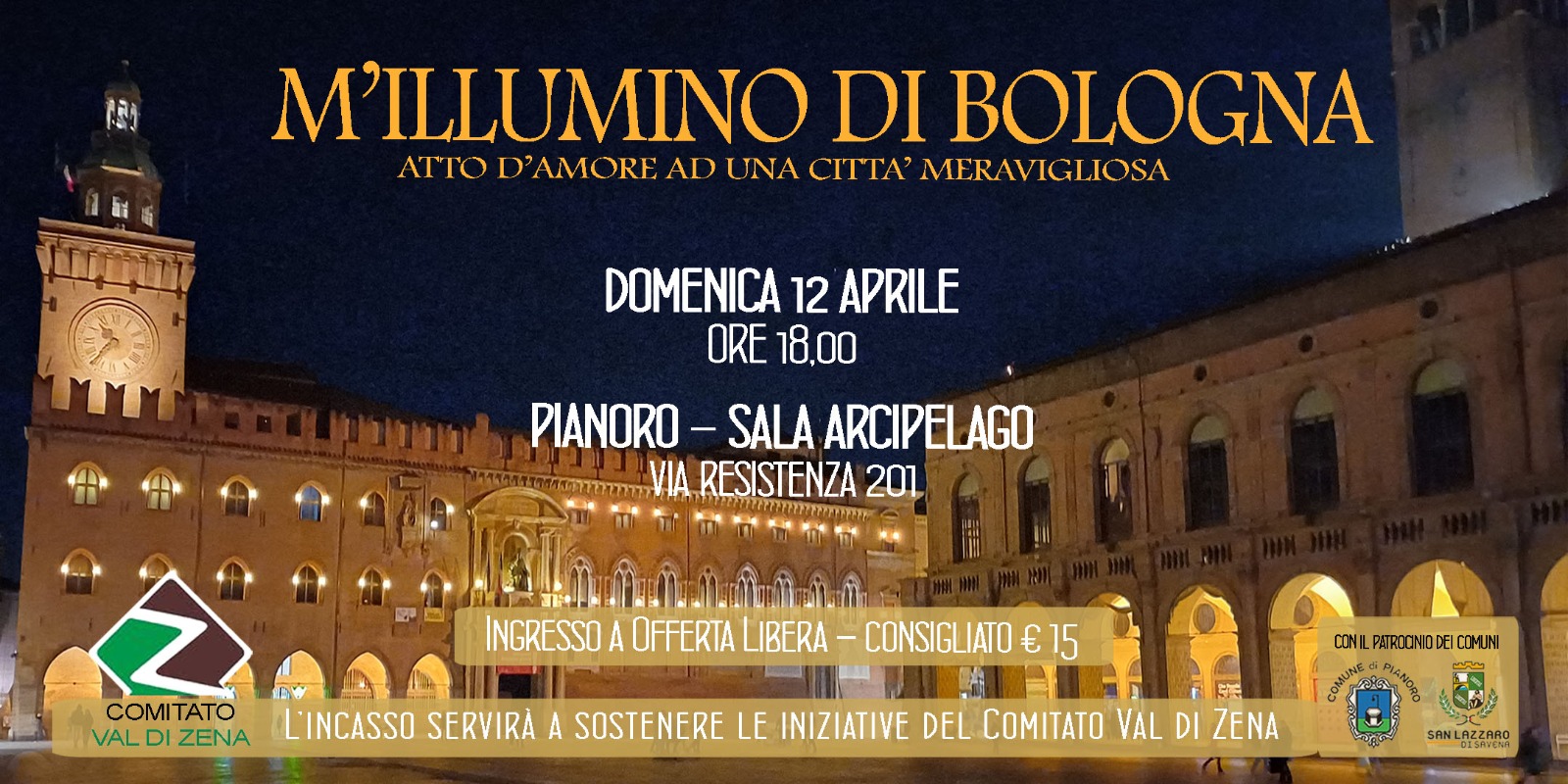 Si informa la cittadinanza che domenica 12 aprile, alle ore 18.00, presso la Sala Arcipelago di Pianoro (Via Resistenza 201), si terrà l’evento “M’illumino di Bologna”, un’iniziativa dedicata alla valorizzazione e alla celebrazione della città di Bologna.