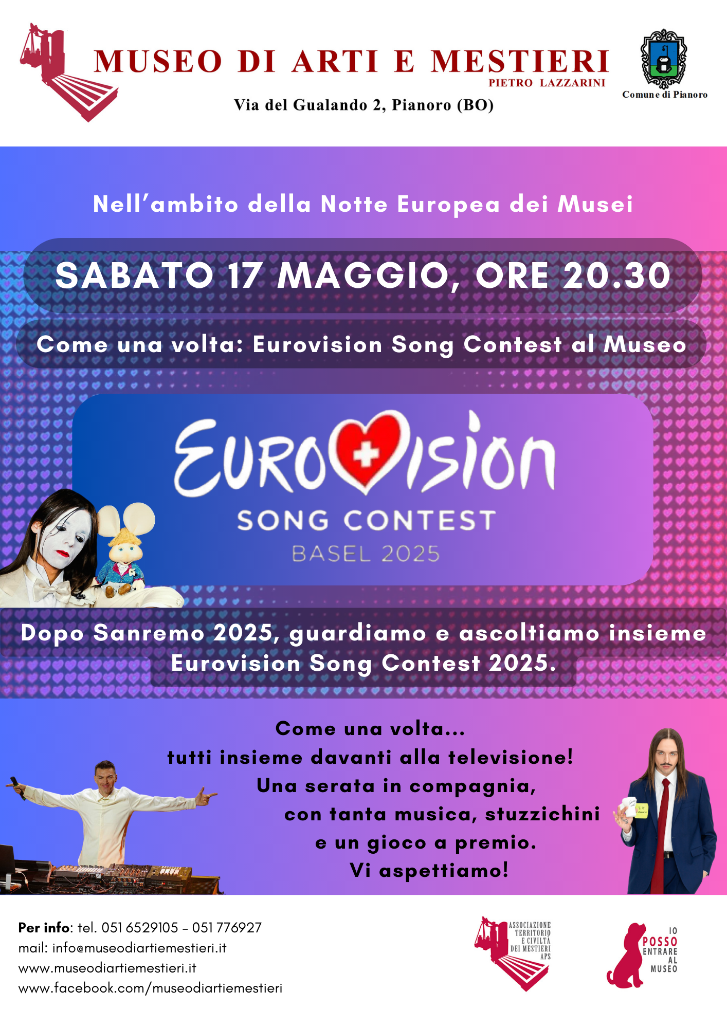 Ore 20,30 – Come una volta! Per chi si è perso Sanremo, ci troviamo al Museo di Arti e Mestieri P. Lazzarini, via Gualando 2, Pianoro, con EUROVISION song contest