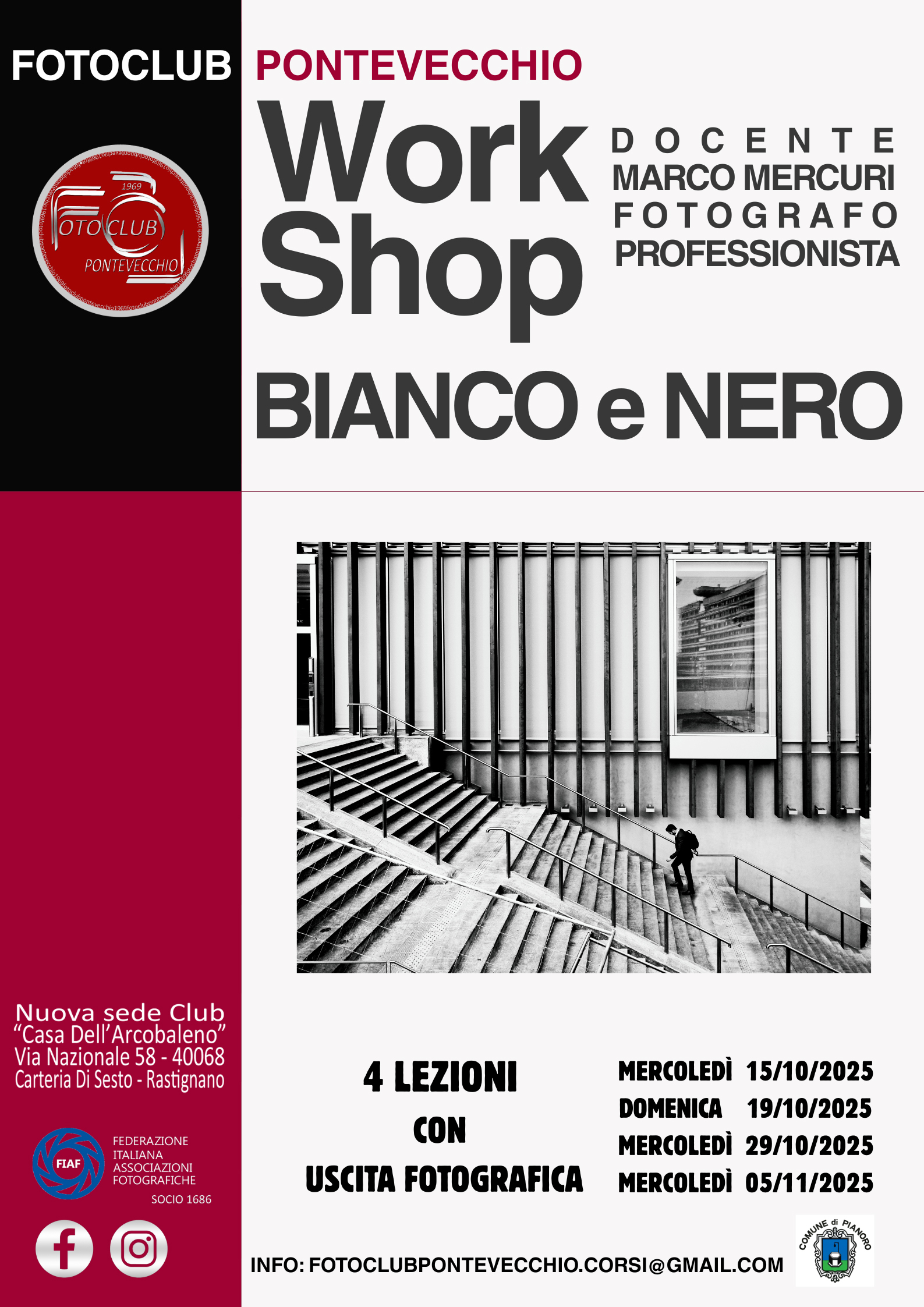 Workshop di Fotografia: Bianco e Nero, a partire dal 15 ottobre 2025, a cura di Fotoclub Pontevecchio, presso Casa dell'Arcobaleno, Via Nazionale, 58 Carteria di Sesto