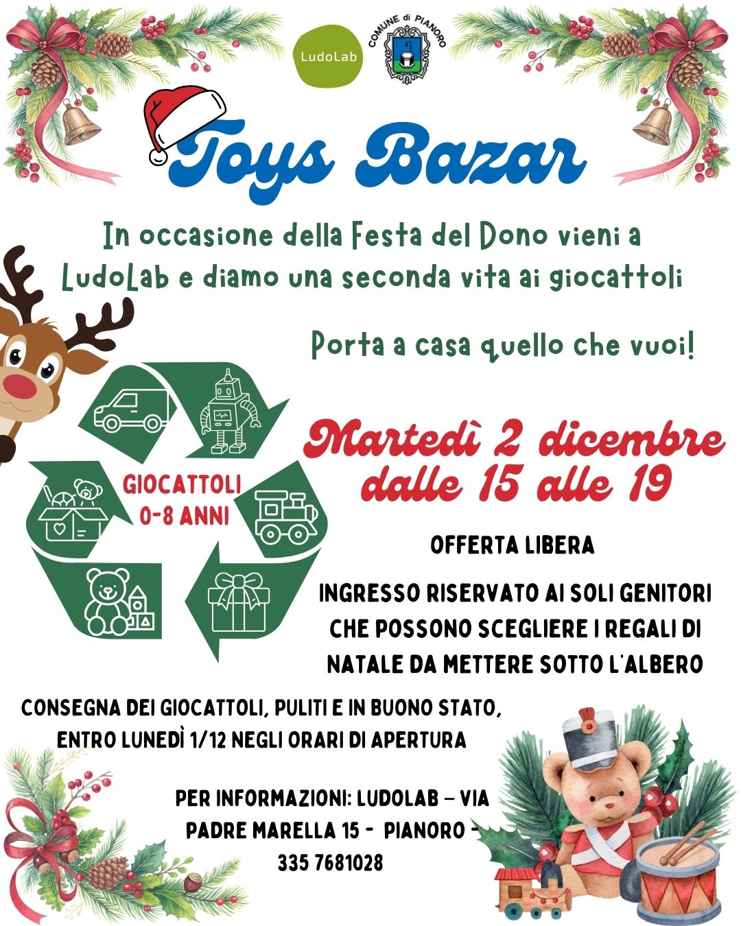 In occasione della Festa del Dono, martedì 2 dicembre a LudoLab ci sarà il Bazar dei giocattoli di Natale, dedicato ai bambini da 0 a 8 anni.